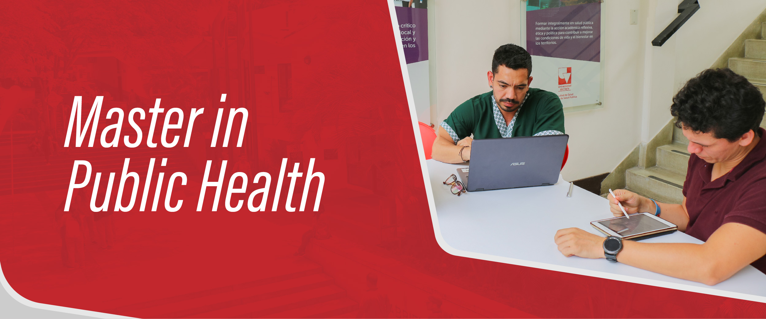 The Master's in Public Health program, attached to the School of Public Health of the Faculty of Health of the Universidad del Valle, seeks to train human talent through comprehensive academic processes.